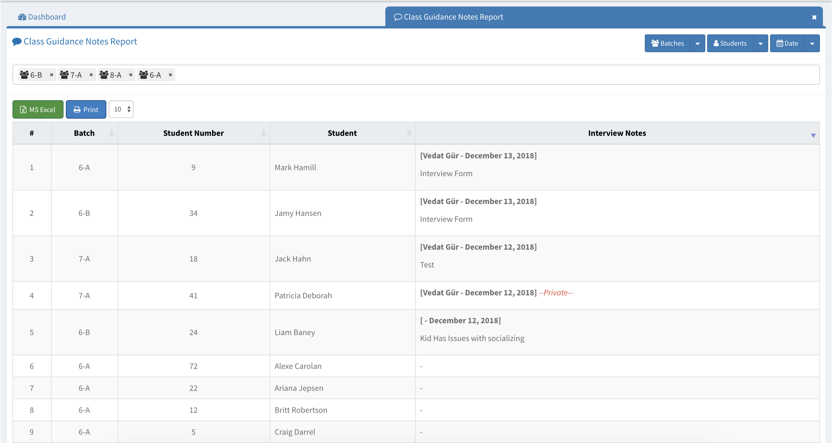Class guidance notes reporting tool work integrated with PTM guidance interviews and notes module to give full picture of the meetings to the administration.