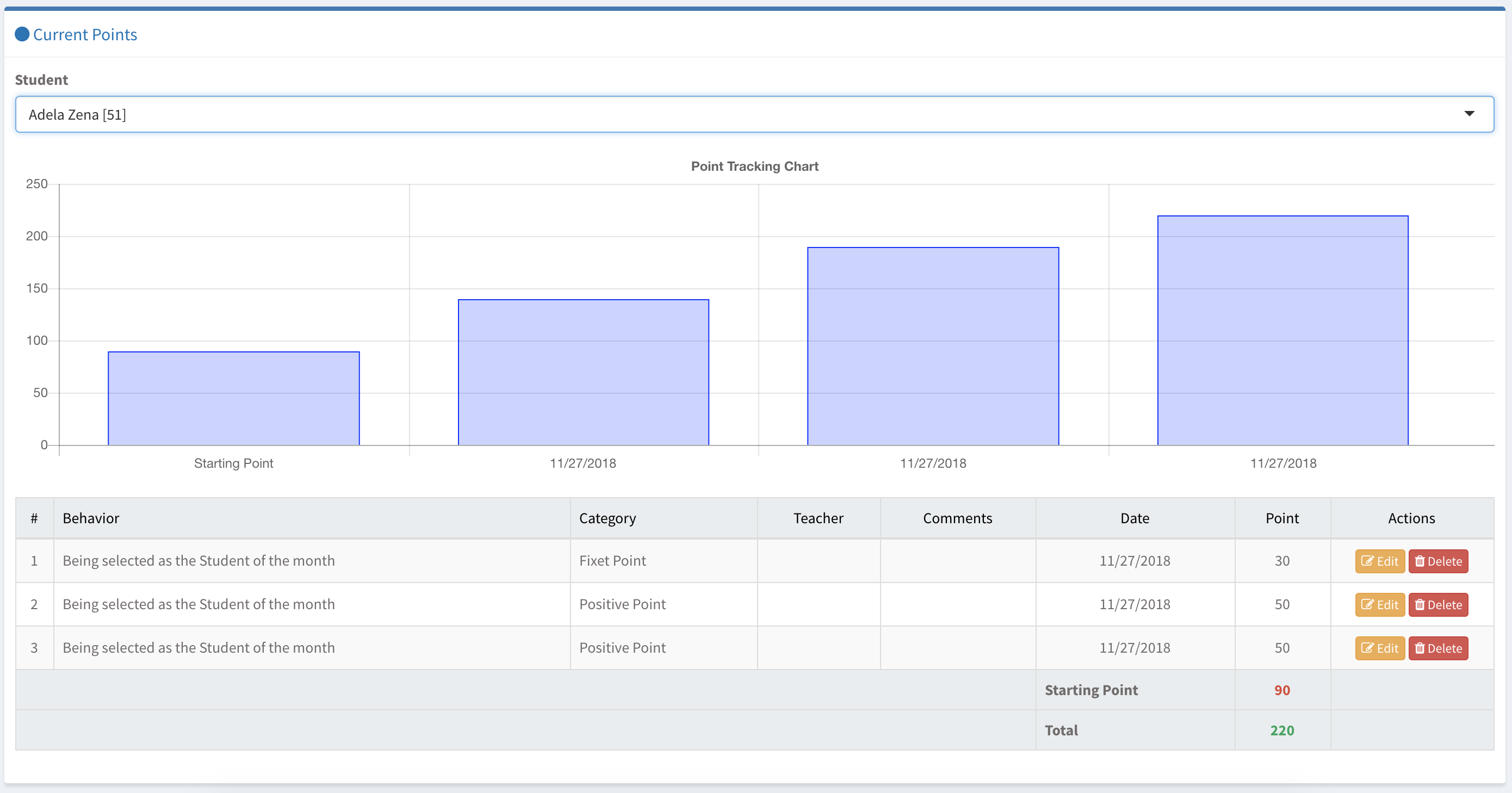 To Add Behavior Point, click on the green button on the right side and the same screen will prompt to choose as same as in Behavior Assessments.