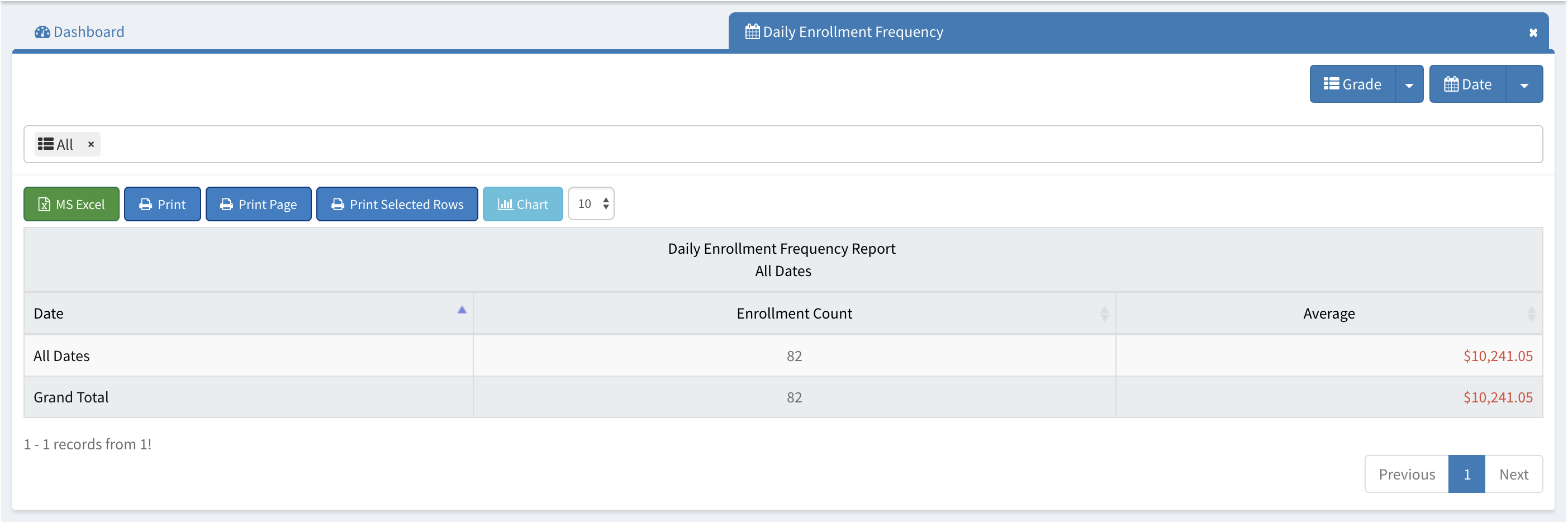 Daily enrollment frequency give you the image of your enrollment seasons status by gathering information from enrollments module and shows the tuition fees that have been issued.