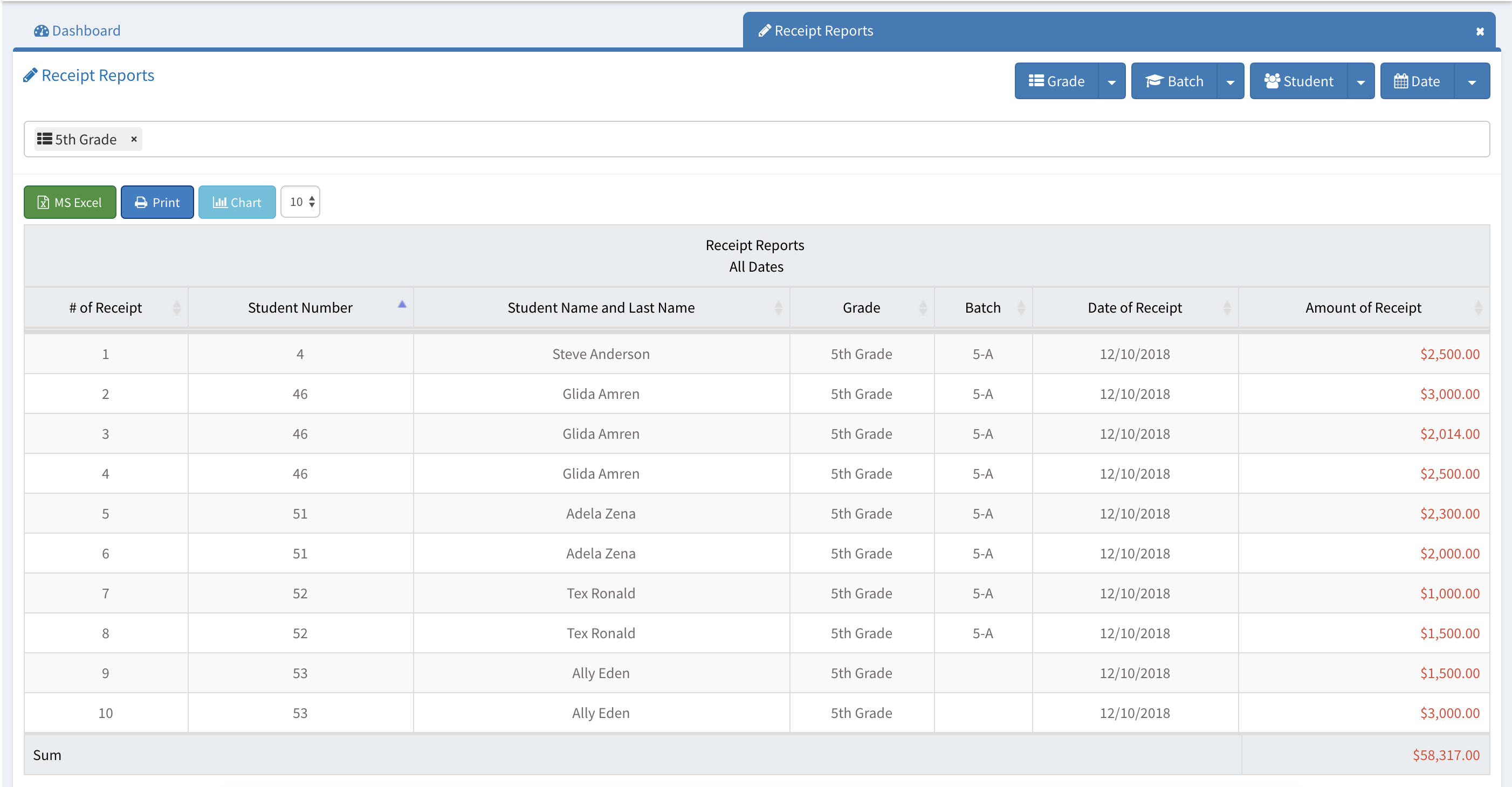 In Financial reports, you can track of your schools receipts automatically when they are issued, approved and paid.