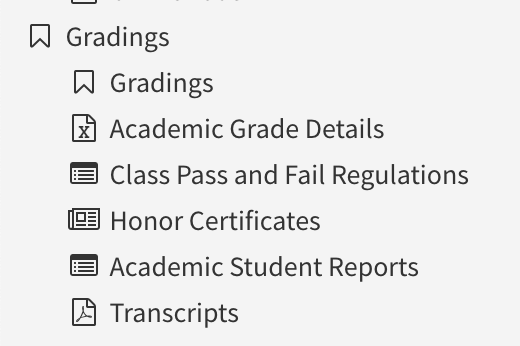 When clicked into Gradings, you can access the general grades of students, batches, classes and lectures.