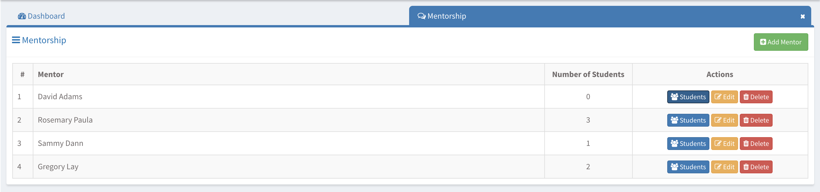 Mentorship module has been created to help schools create a mentorship program and assign students with lifelong mentors within their schools.