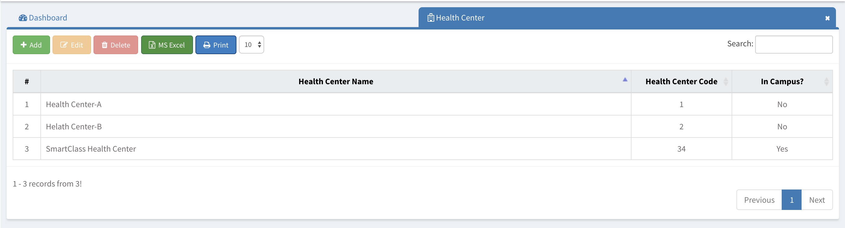 To add a new health center in one of your campuses, click on +Add