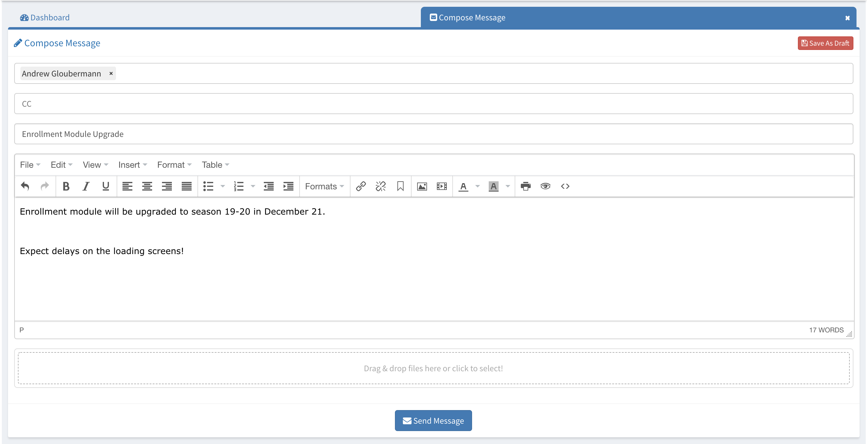 You can send SmartClass messages to the other users in SmartClass Compose Message part.