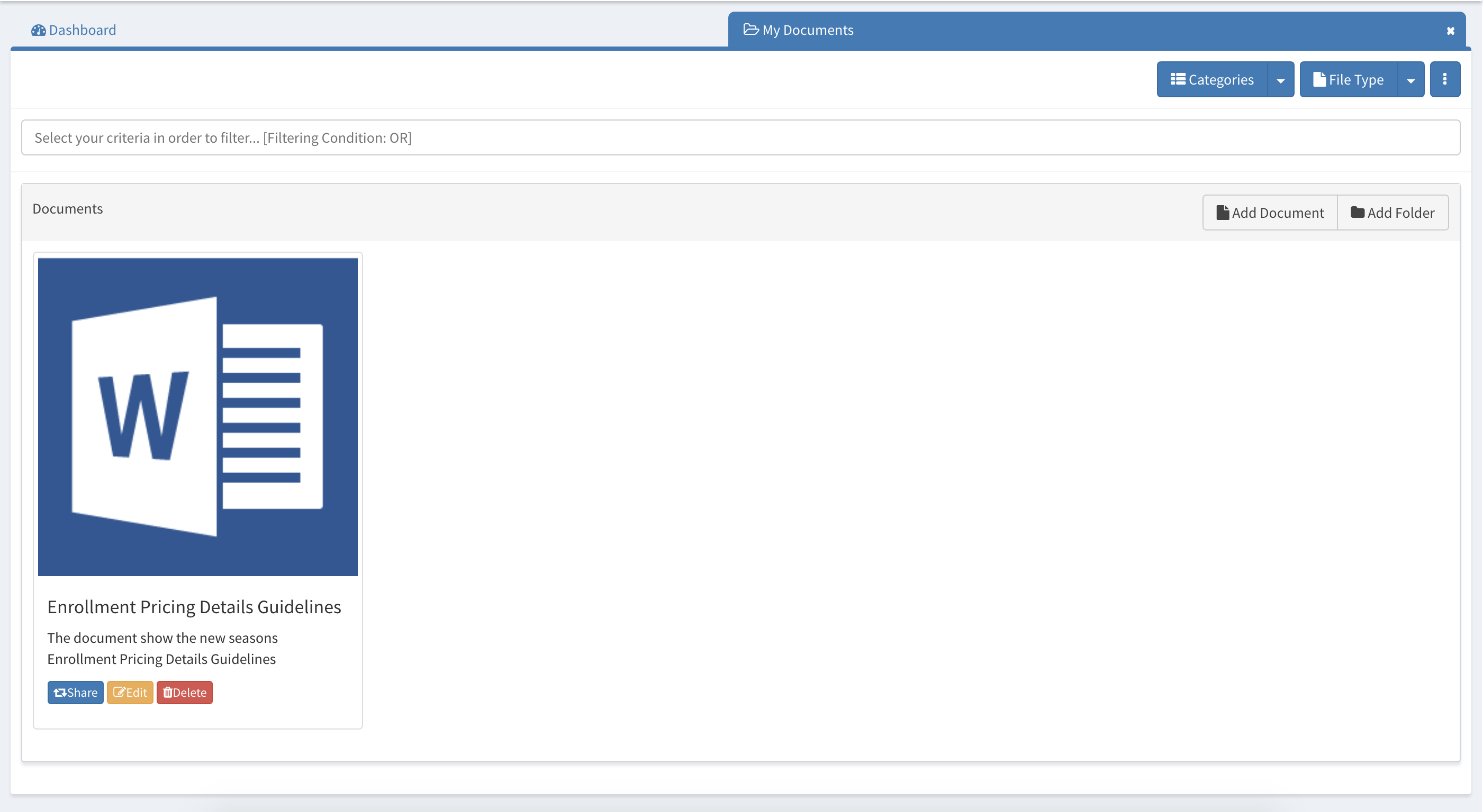 You can also add new categories, sub folders and documents into "My Documents" module.