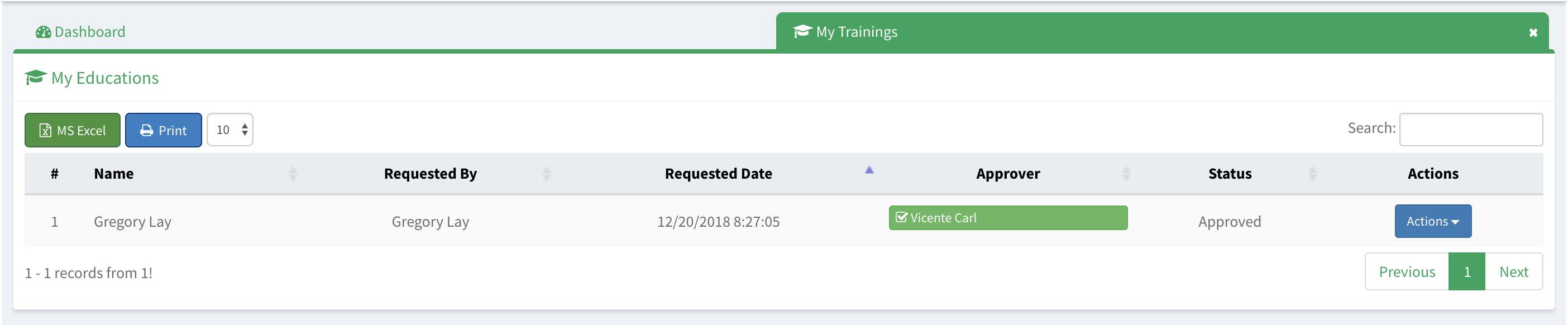 When process is complete, the attendee for the training has to submit the training and details to the approver.