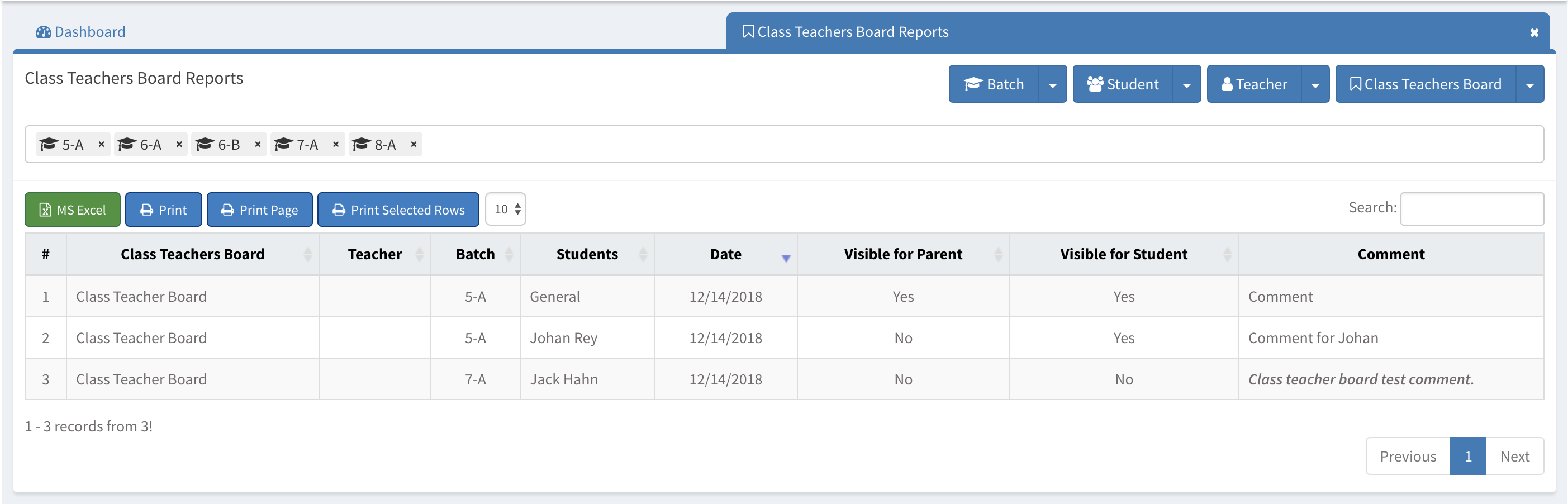Class teacher board reports enables administrators have the view of general situation with their schools discussion boards.