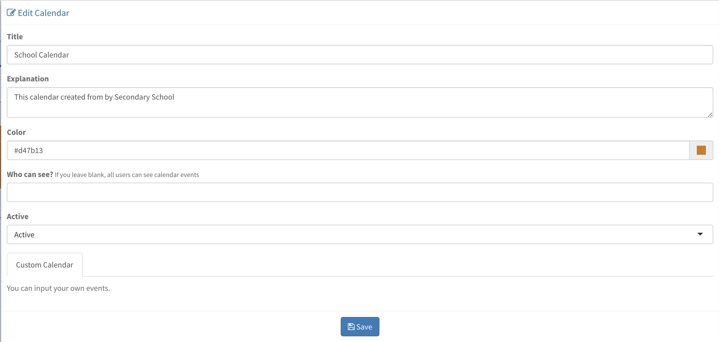 Calendars gives you the view of different calendars being used in SmartClass accounts.