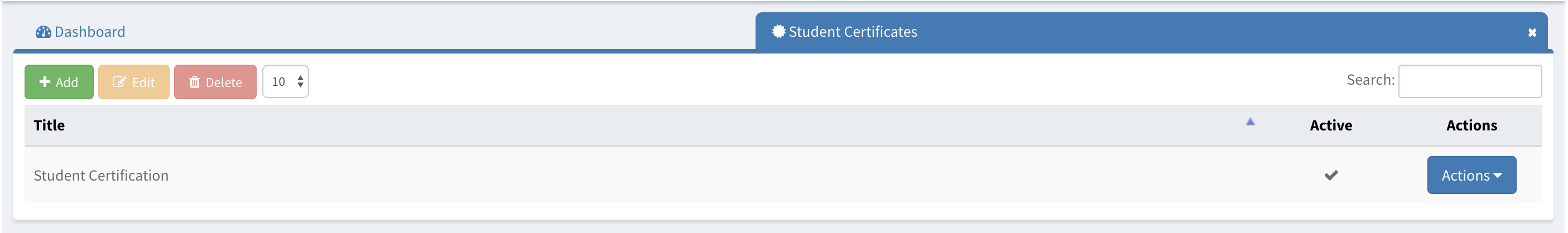 To change the certificate settings, click on Actions and Student Certificate Settings