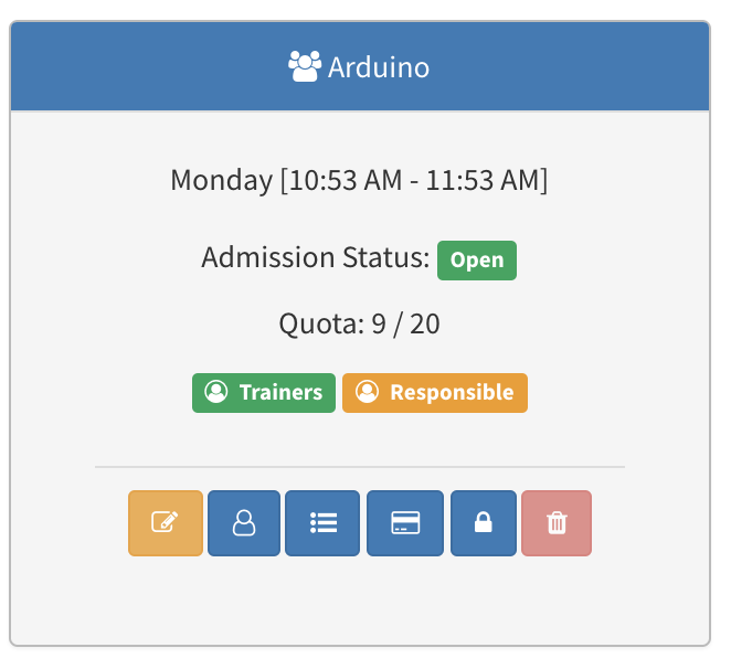 To add sessions and see the existing sessions of a club click on the third icon to show the sessions list.
