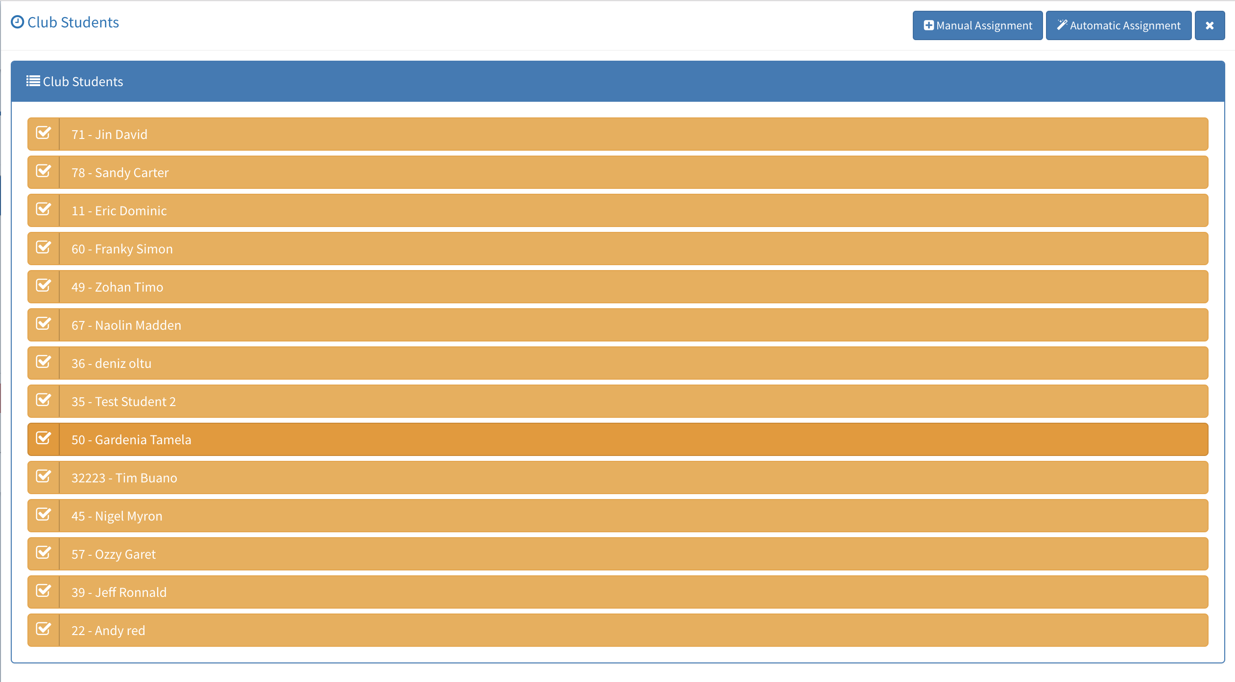 When clicked, the page will enable you to select the students manually or automatically that fits into your criteria.