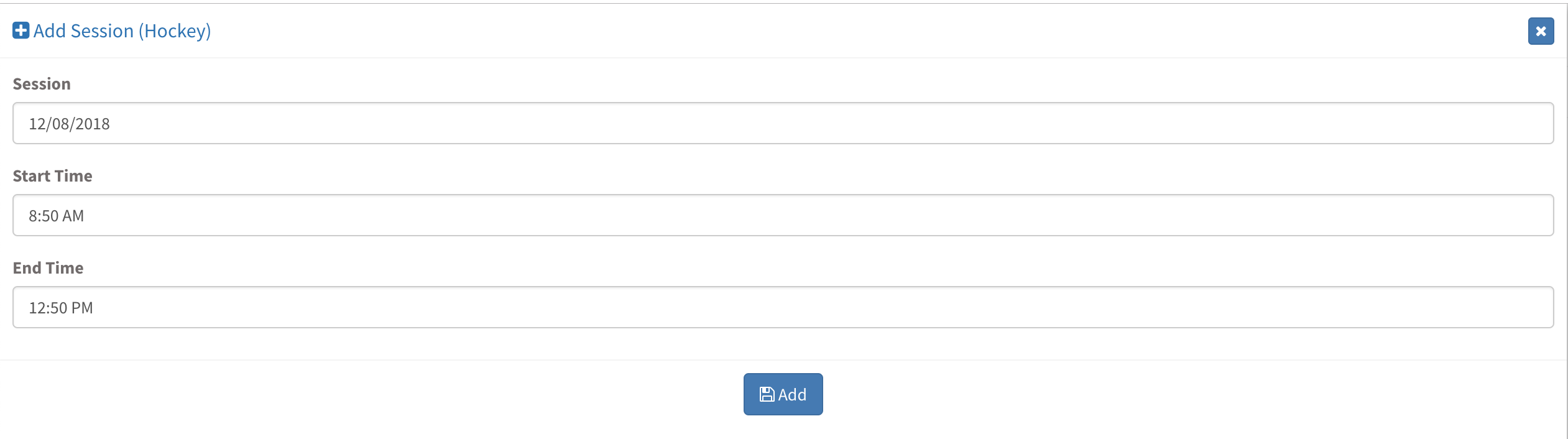 Because the location information already provided in club creation, this will only create the session time and allow enrollment.