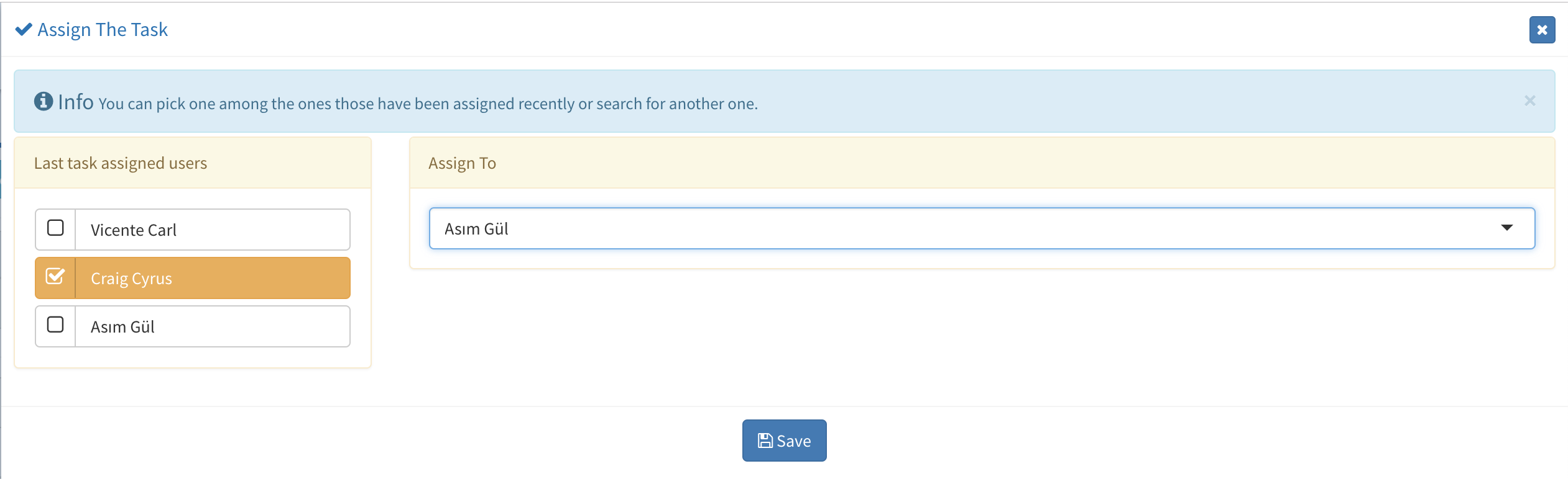 If you have more than one personnel in the IT department, you can assign the incidents to a person by clicking Assing the Task and selecting to whom you would like to assign the task.