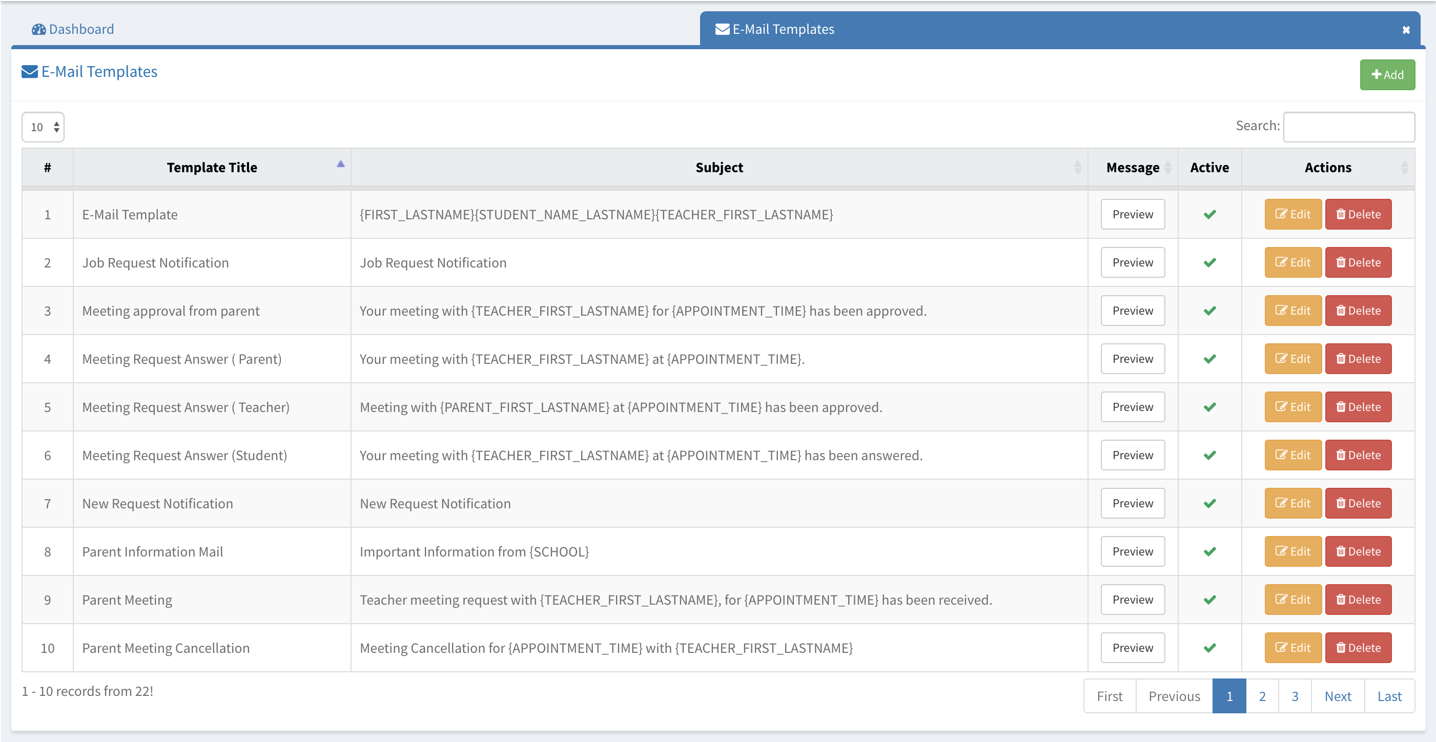 Email templates enables the communications made by your school SmartClass system to send previously created templates.