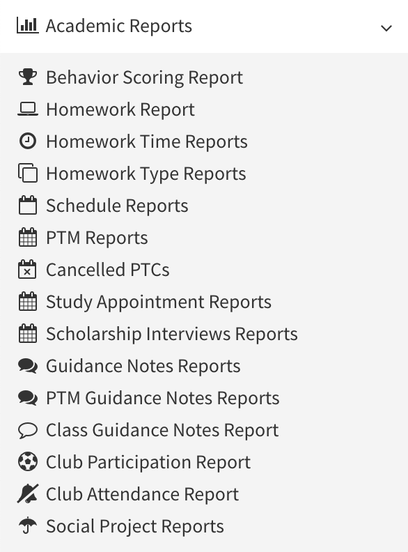 Academic Reports module lets you oversee your school's situation under academic improvements.