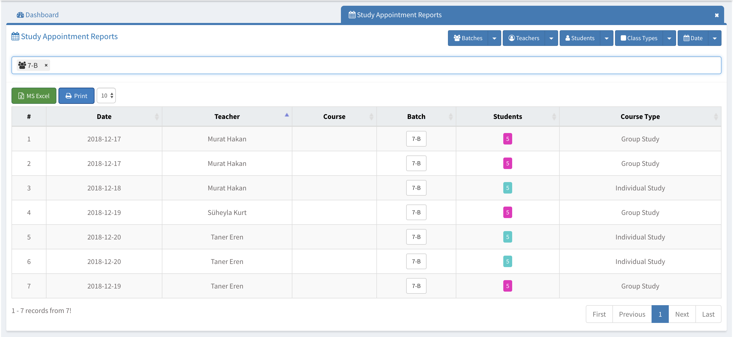 Study appointment reports is the reporting section where you can access various reports a student or batches booked study appointments.