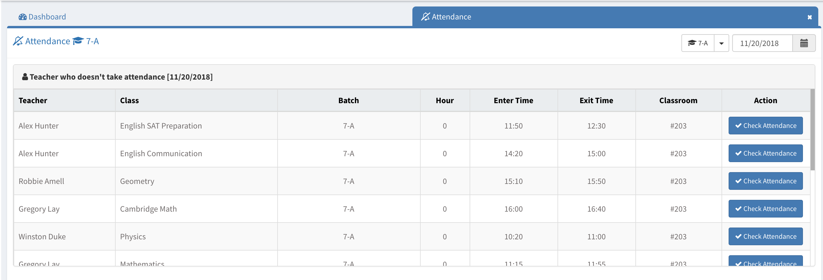 From administrative stand point, you can collect attendance data with ease and dive deeper into past attendances as well as live ones and can even see which of your teachers are not taking attendance.