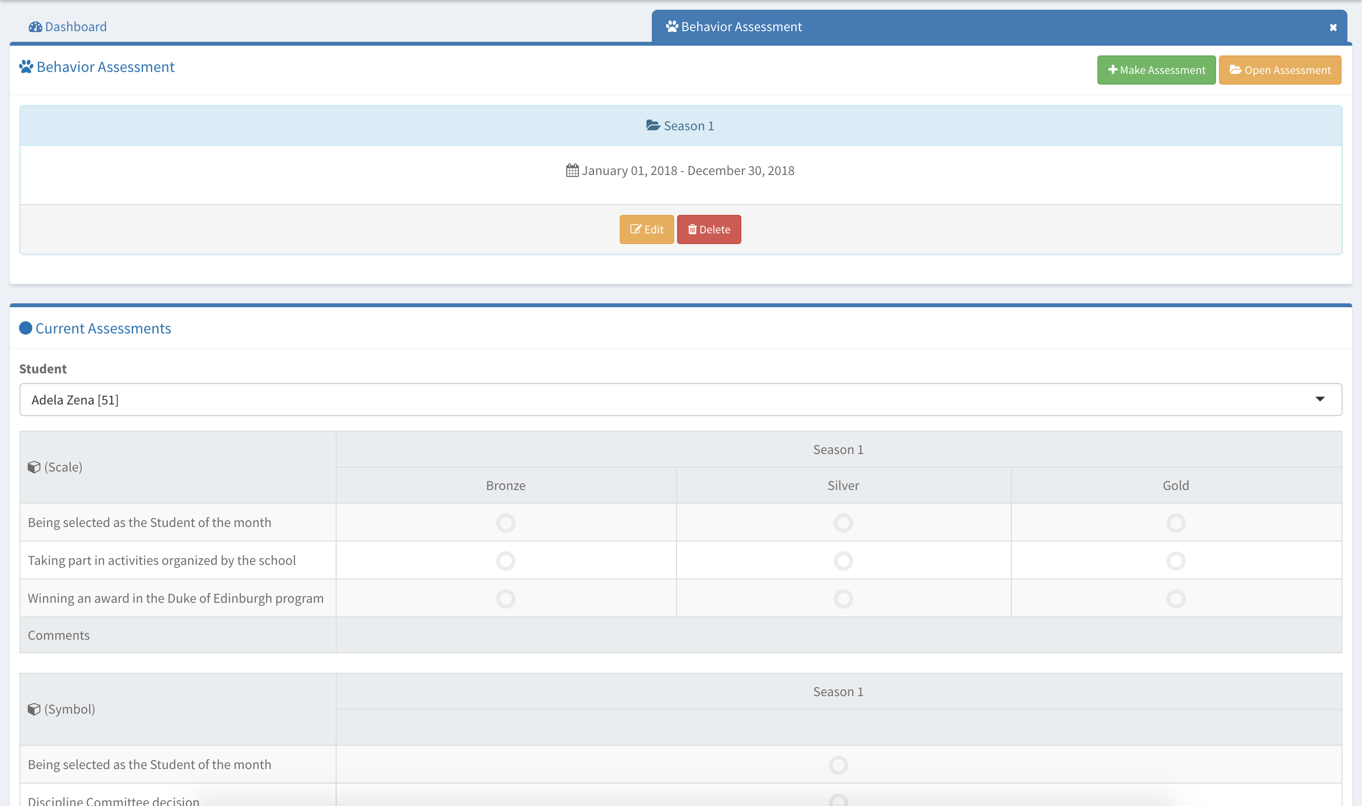 Once the categories are completed and published, teachers can add behavior assessments to their students easily.