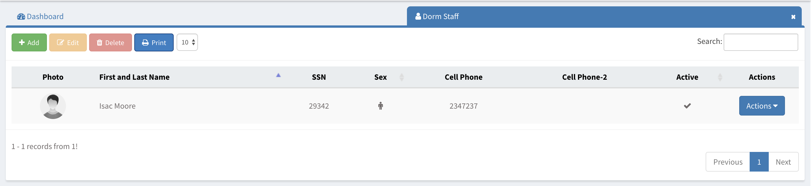 All dorms personnel will be in the list and their information can be edited from the single menu.