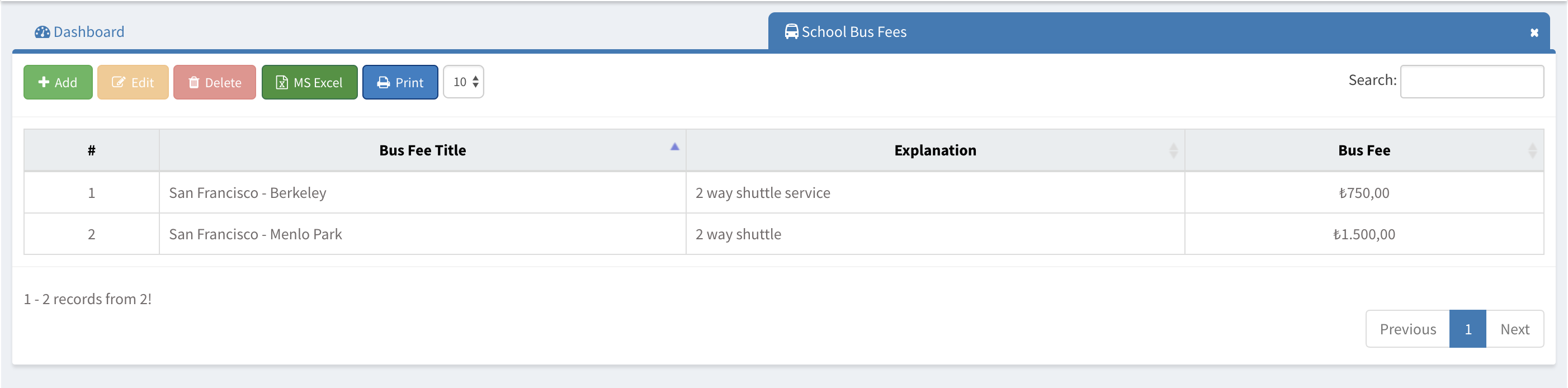 In school bus fees section, you can add/edit your schools bus fees from a single menu.