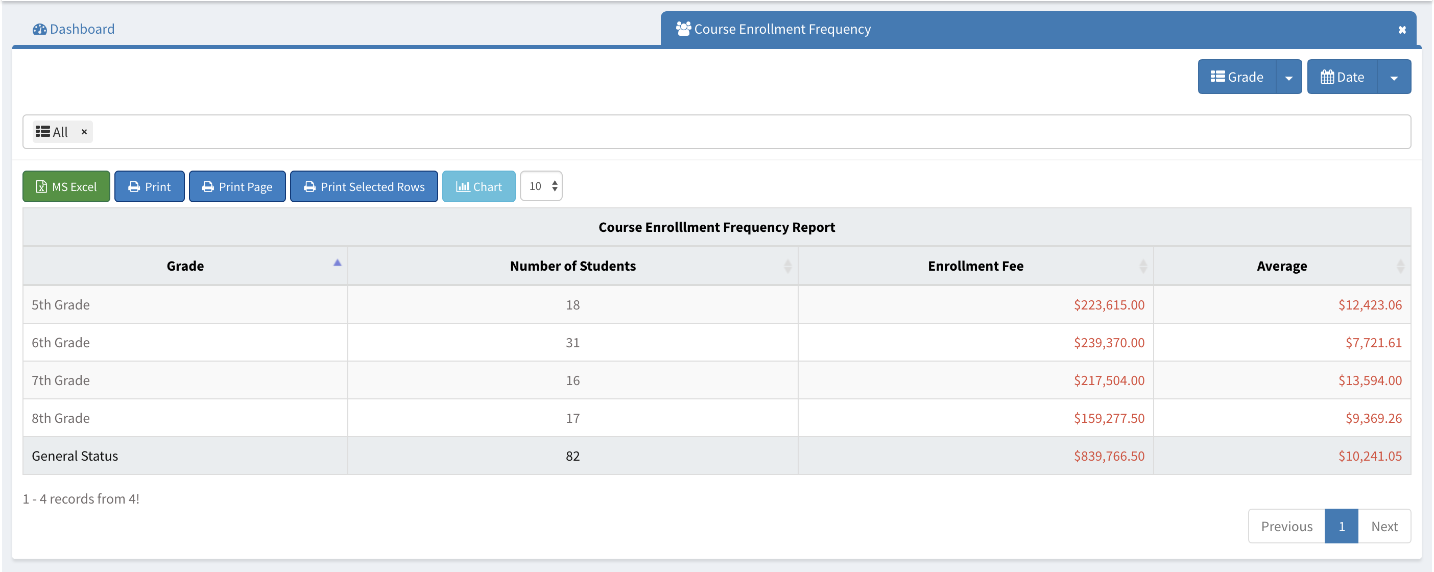 Course enrollment frequency give you the image of your course enrollments status by gathering information from enrollments and courses module and shows the tuition fees that have been issued for the classes.
