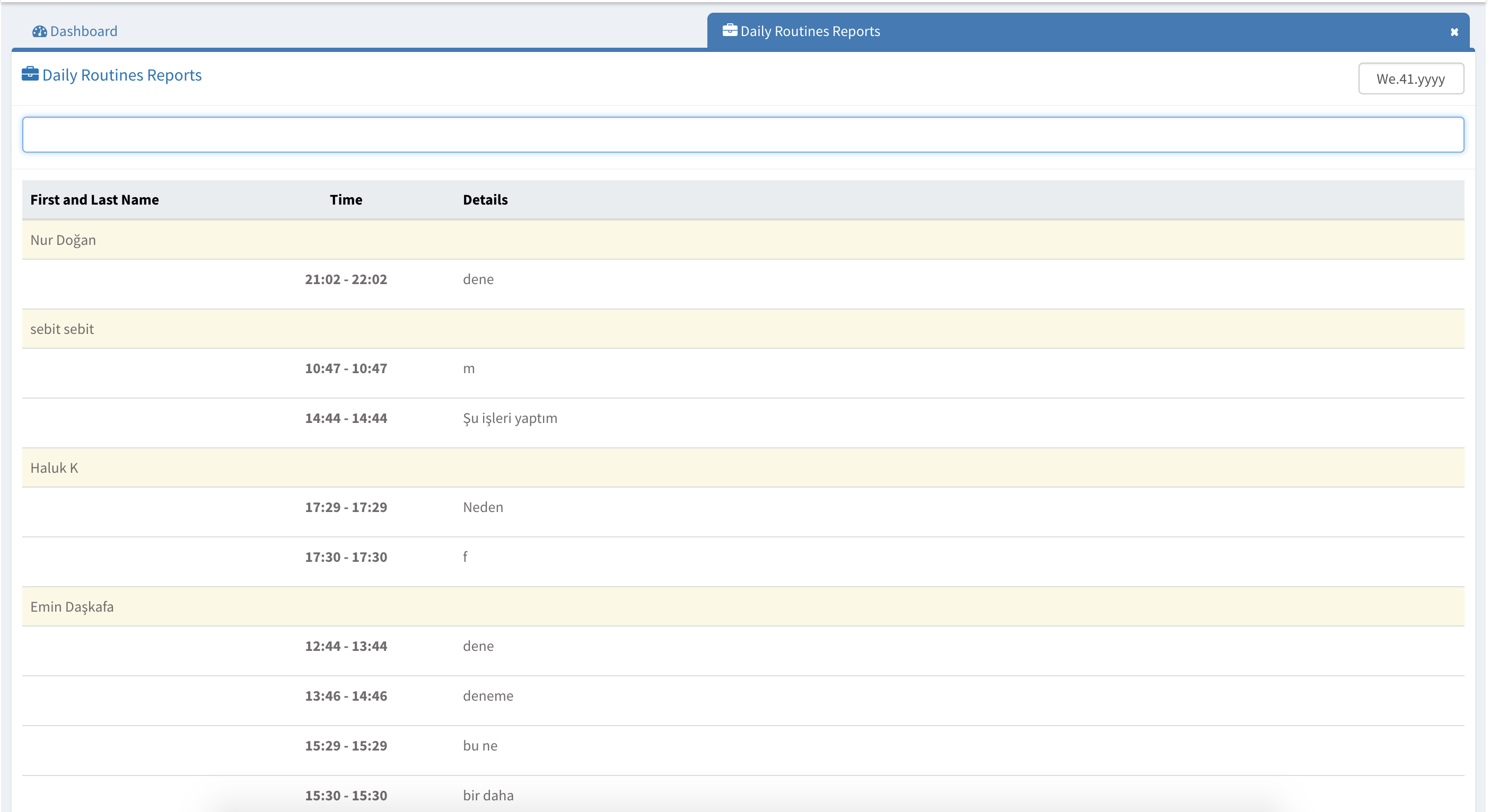 In daily routines reports, you can access all your campuses user reports easily by typing their name and selecting the desired report day.