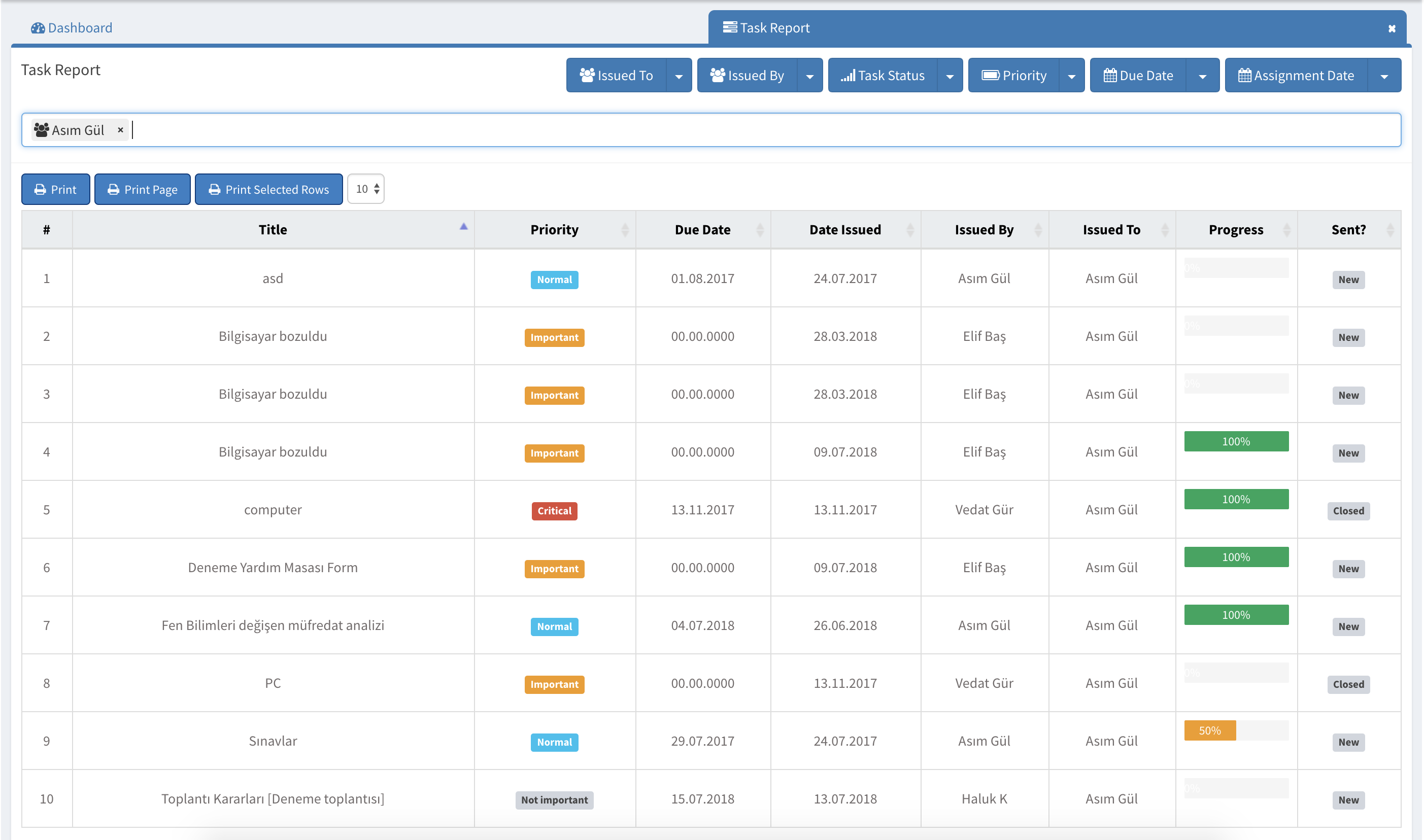 Task reports allow the administration or the management to see how the assigned tasks have been completed or not with various details and filtering options.