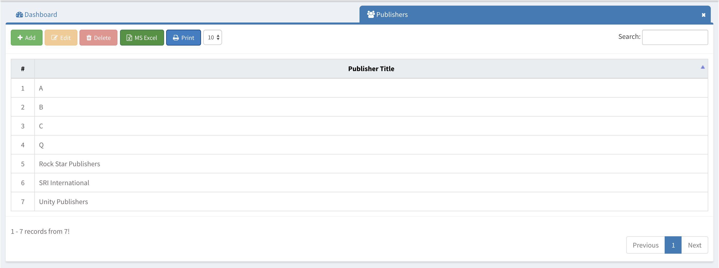 To add a new publisher, click on +Add on the left hand corner and fill in the information.