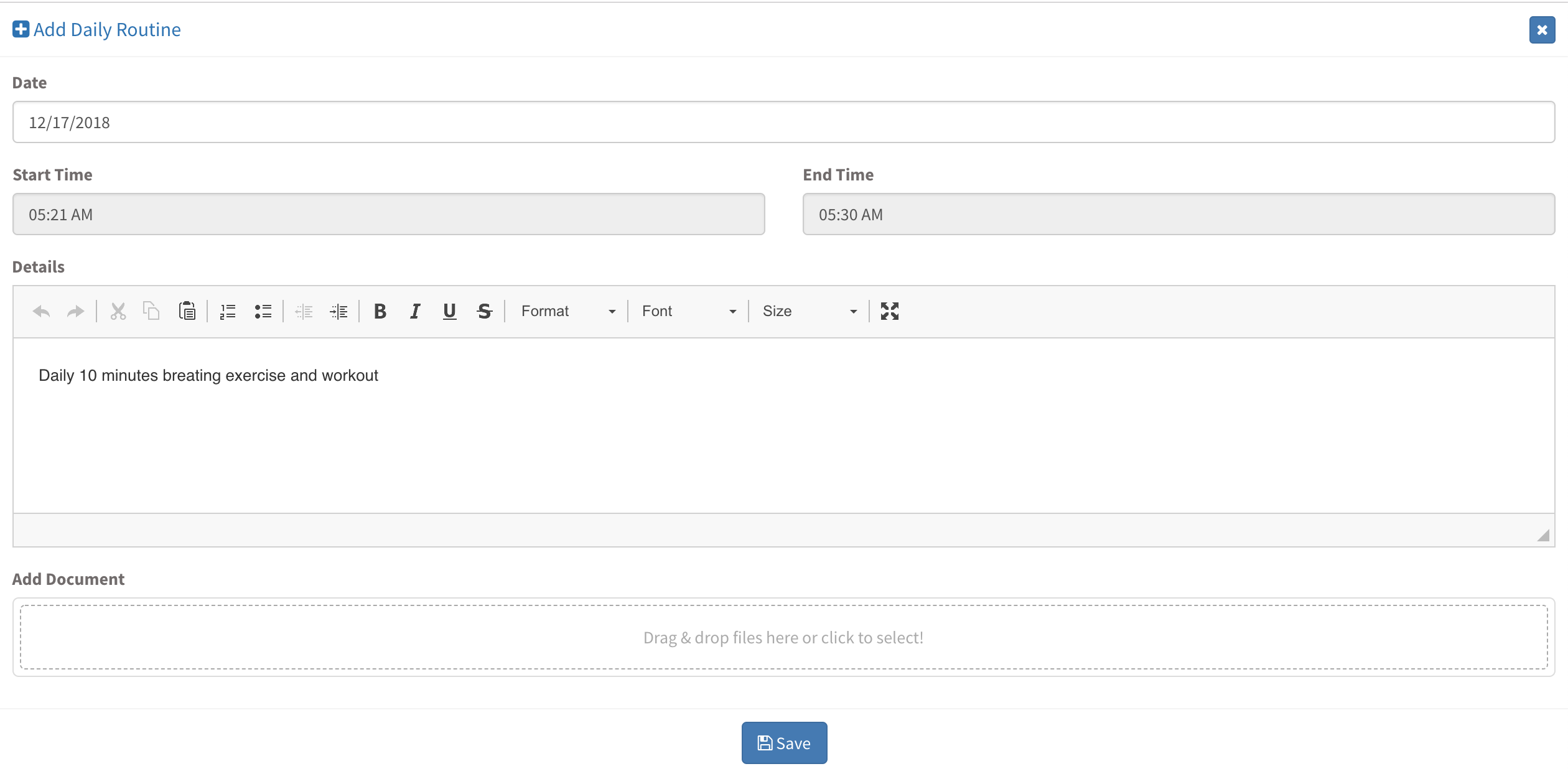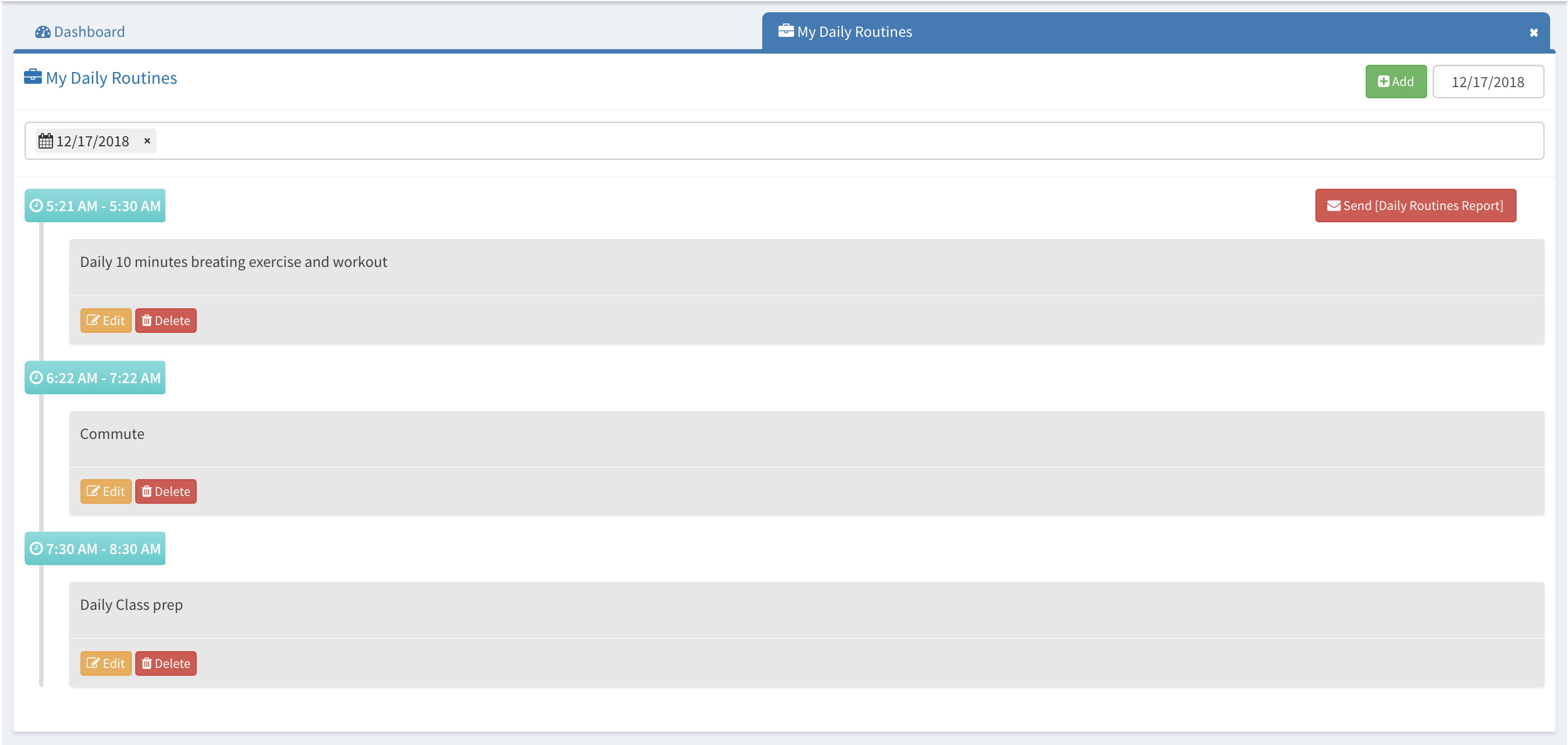To add a routine, click on +Add button located on the right side of the screen and fill in information.