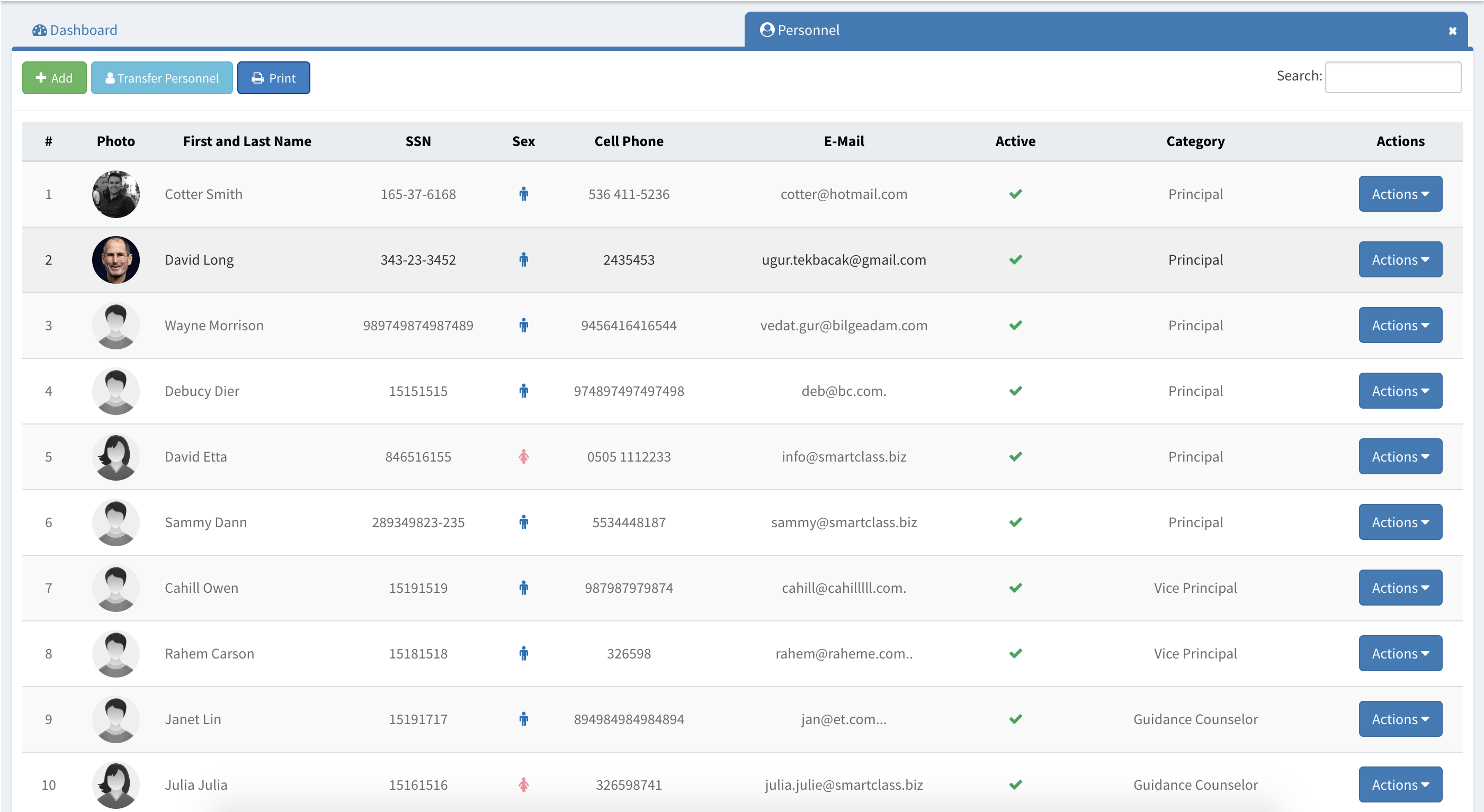 In here, you can see the list of your schools employees including; teachers, administrators, department workers and anyone else on the payroll.