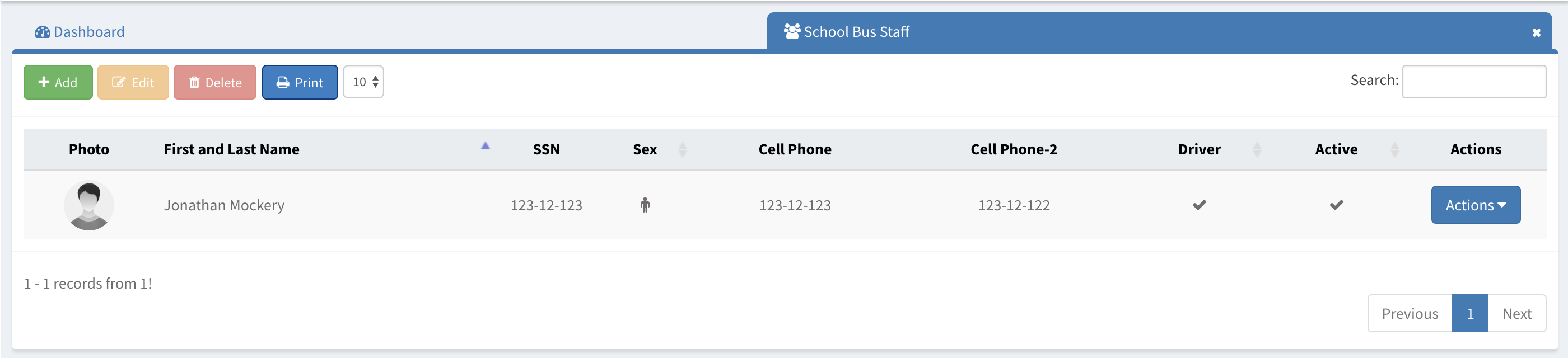 To add school bus staff, simply click on +Add button and fill in the information,