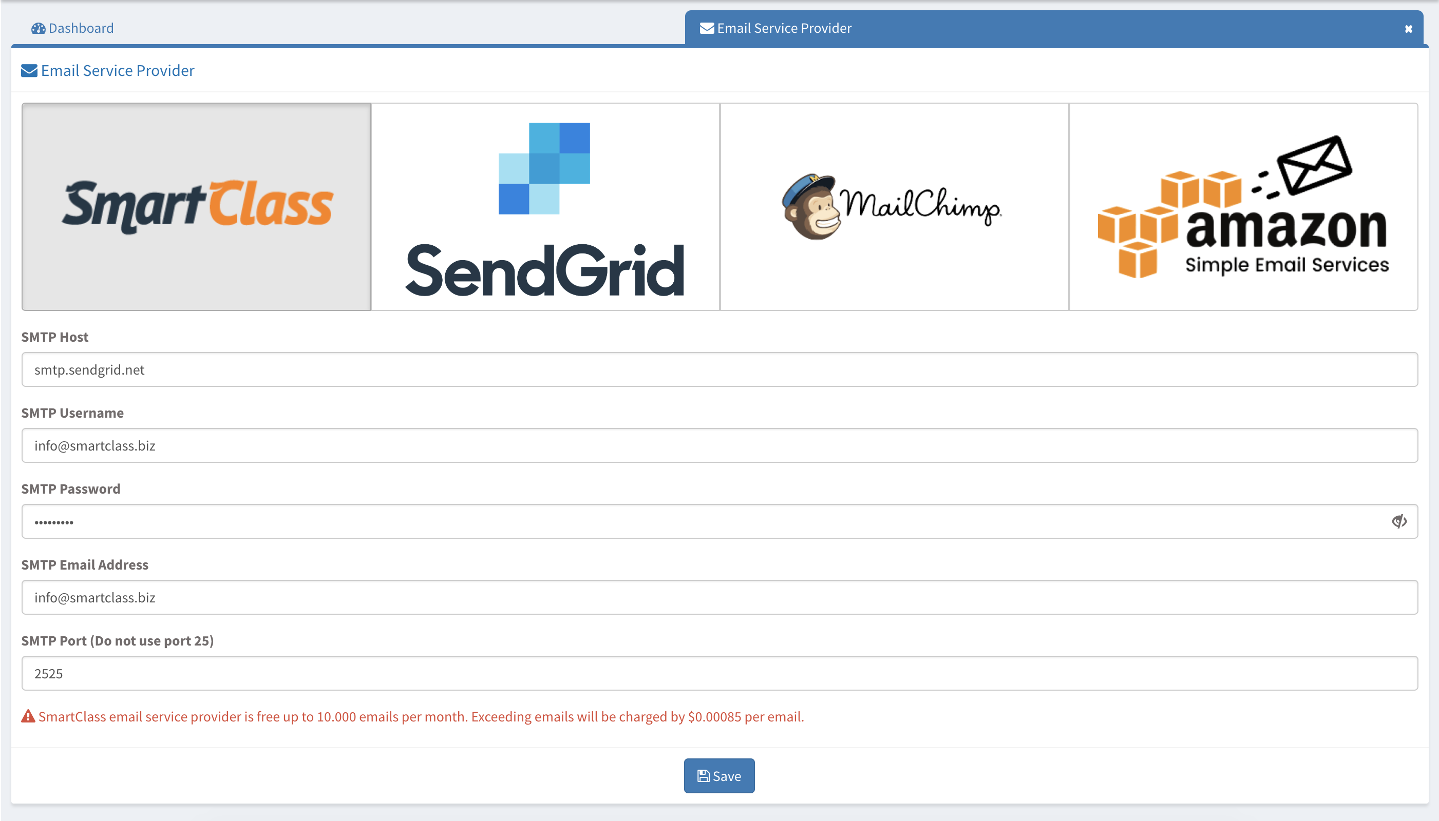 You can connect your schools existing email service providers or opt-in to user SmartClass email provider to send emails.