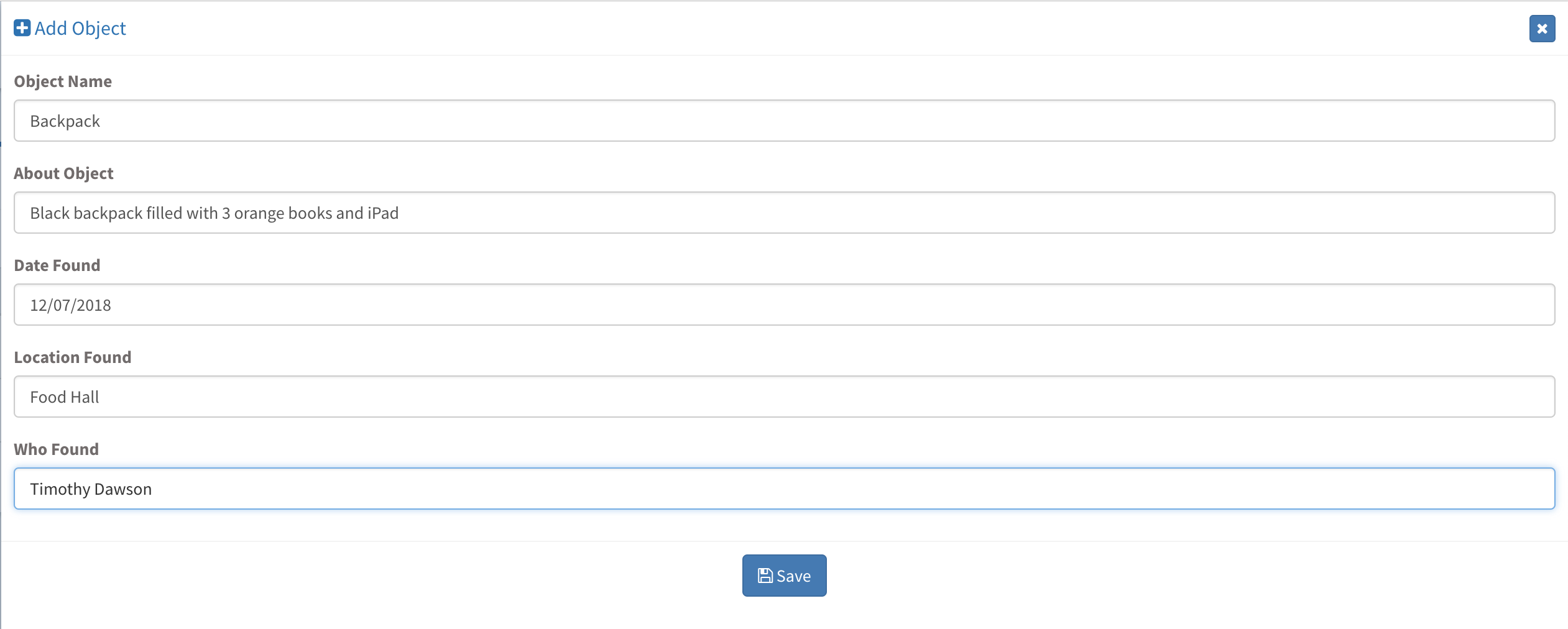 You can add a lost item easily by clicking +Add button located on the left side and fill in the information.